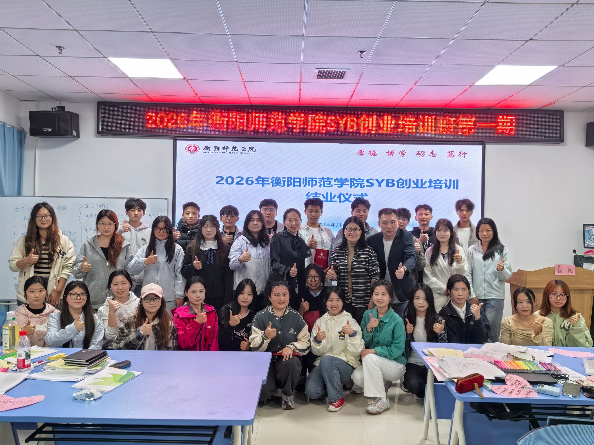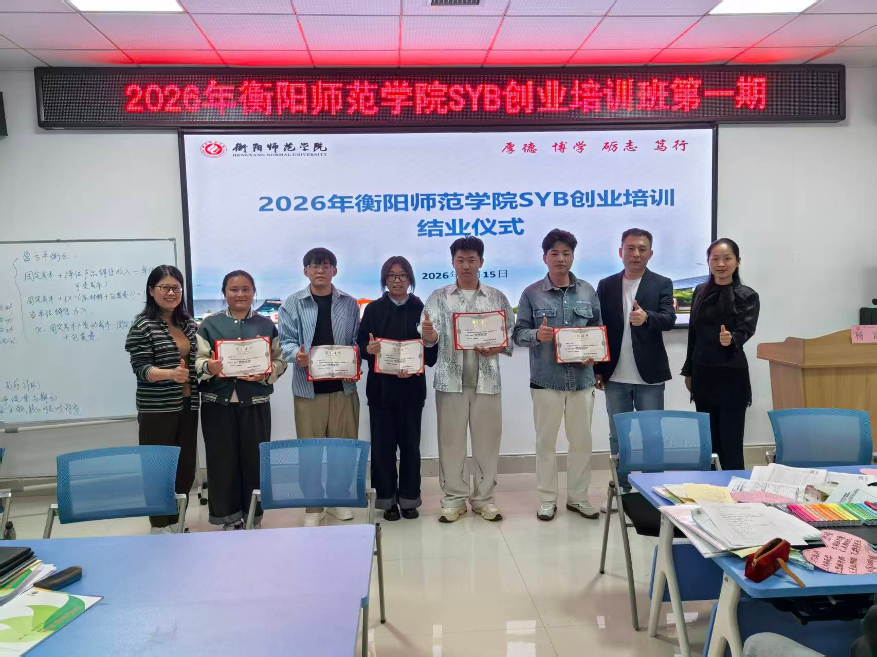 4月15日晚,在市人社局的大力支持下,我校2026年第一期SYB创业培训班结课,本次培训班从3月27日开始,4月15日结束,共80学时。培训严格按照国际劳工组织SYB教学标准进行,涵盖“企业构思”“市场评估”“人员组织”“启动资金预测”“利润计划制定”等十个核心步骤。